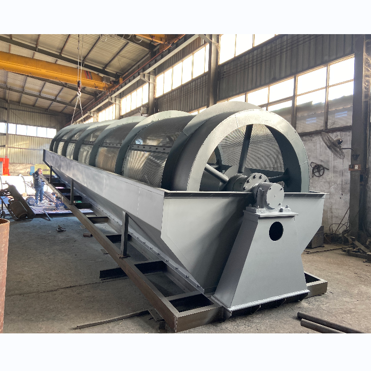 無軸滾筒篩是由滾筒、機架、漏斗、減速器、電動機五個部分成。礦物進入滾筒后,一方面隨著滾筒轉動而被篩選,一方面粒度大的石料沿著滾筒的斜度向前流動,通過不同網目的的篩網逐漸被篩出。不大的石料篩出后落入各自的漏斗,然后由人工運出或自流送往成品堆.